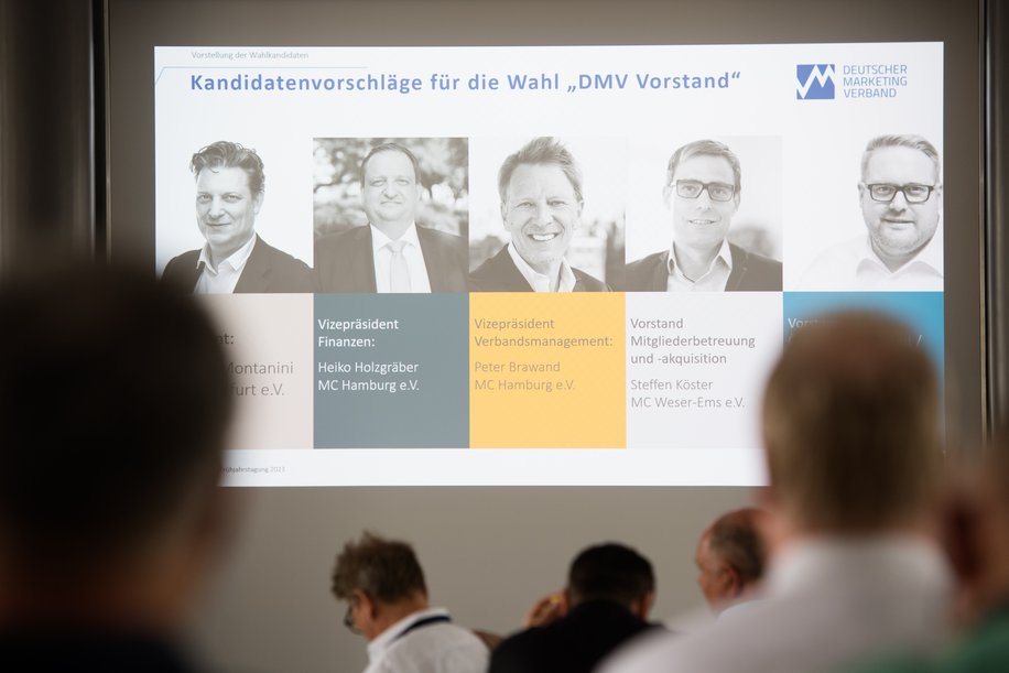 Alle zwei Jahre wird auf der Mitgliederversammlung auch der Vorstand gewählt: Ein neues Gesicht tritt dem Vorstand bei, sechs Vorstände wurden für weitere zwei Jahre im Amt bestätigt. Der langjährige Vizepräsident und Finanzvorstand Helmut Loerts-Sabin steht nach 8 Jahren nicht mehr zur Verfügung. Zudem wird der Geschäftsführer Mitglied des Vorstandes, aktuell Florian Möckel, was zu einer engeren Verzahnung des Hauptamtes mit dem Ehrenamt führt. Darüber hinaus vertritt der jeweilige Sprecher des Beirats zukünftig die Interessen der Regionen im Vorstand. Die Neuwahlen der Sprecher der jungen Marketer (Marketing Pioniere) erfolgt im Sommer 2023. Auch der Beirat des Deutschen Marketing Verbands e.V. wurde wieder gewählt. Im Rahmen der fünf Regionalsitzungen hatten die Clubvertreter die fünf Beiräte stellvertretend für ihre Region im Frühjahr 2023 bereits gewählt.